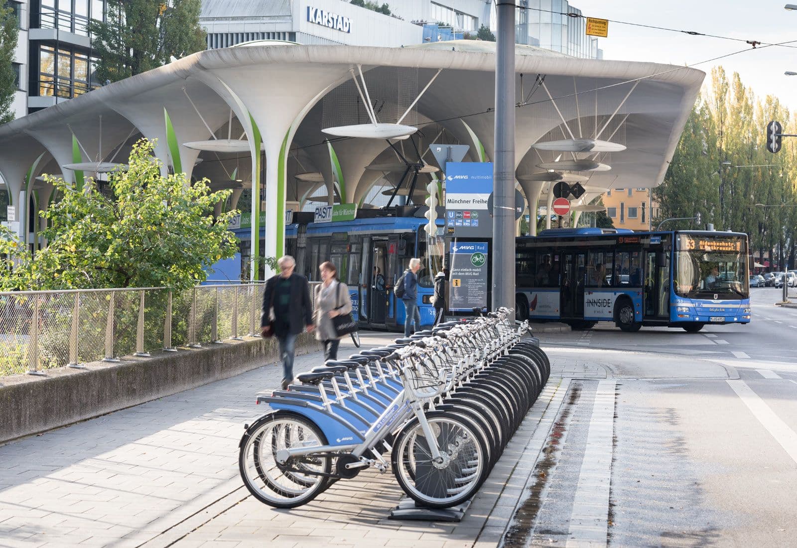 Het ontlasten van het wegennet draagt bij aan een beter bereikbaar Gelderland, nu en in de toekomst. Daarom werkt de provincie aan een netwerk van hubs; belangrijke schakels voor reizigers om hun overstap te maken naar een andere vorm van mobiliteit. Bron van de foto: Münchner Verkehrsgesellschaft (MVG)
