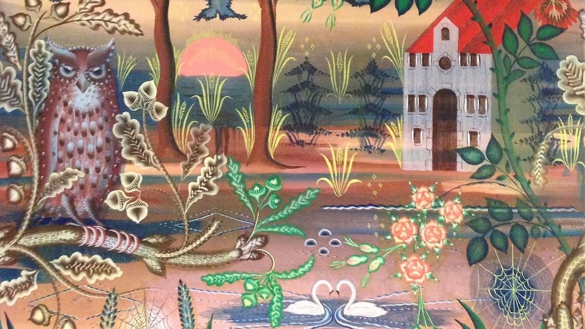Dorine: Daar zit ook een hele interessante dichotomie in voor mij. Aan de ene kant vind ik het heel sprookjesachtig, sfeervol, gezellig en ook wel lieflijk. Duifjes/tortelduifjes in een boom. Zwanen in een hartvorm die harmonieus samen aan het zwemmen zijn. Een beetje paradijslijk ook wel misschien. Tegelijkertijd ook wel dat unheimische. De kleuren kloppen net niet helemaal. Het voelt een beetje vriendelijk maar er zit toch wel een grote doorntak van die rozen. Het is zo dromerig dat het ook zo een nachtmerrie kan worden.