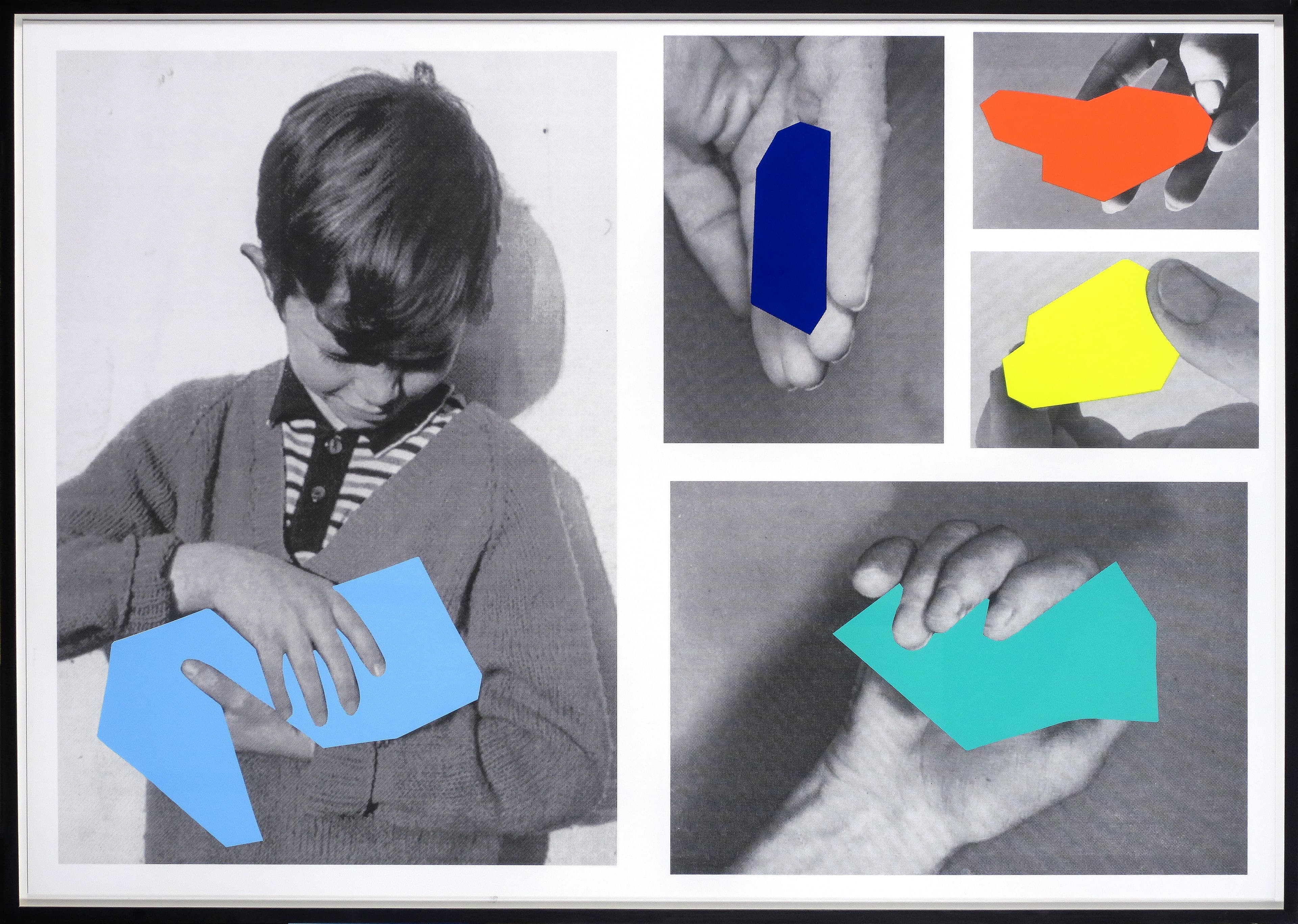 Mariska: Dankjewel, ja wat zien we. We weten eigenlijk niet helemaal wat we zien is dat bij dit kunstwerk. Je ziet een jongetje, je ziet handen en op al die plaatjes hebben ze een vorm, een voorwerp, zeer kleurig vast. En dat is eigenlijk wel een contrast in het werk. Dat je een heel precieze achtergrond hebt die wel herkenbaar is, een hand een jongetje. En wat ze vast hebben mag jij raden of heeft een verhaal.